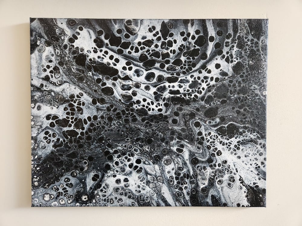 Painting is 16x20" Acrylic on Canvas. Comes with a floating black frame and a certificate with it's origin story.