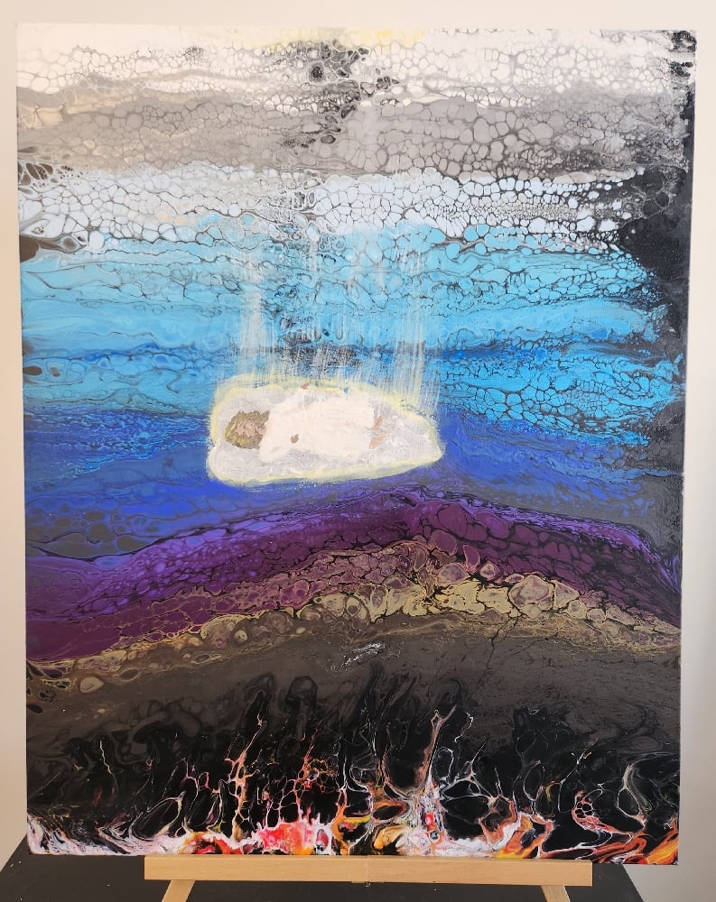 Painting is fluid art acrylic on Gallery Level 2 Canvas 24x36"